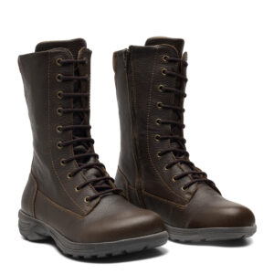 Pue ja säädä: löysää nauhat, avaa vetoketju ja sujauta jalka sisään. Kiristä nauhat niin, että kenkä istuu tukevasti, ja sulje vetoketju. Joustava Orthostretch‑nahka mukautuu jalan anatomiaan.